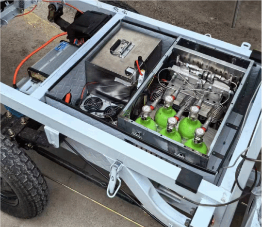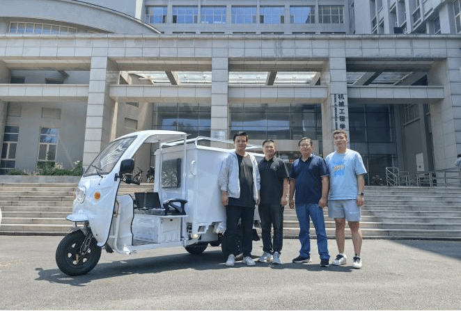 7月的校園,烈日炎炎,濟(jì)南大學(xué)機(jī)械工程學(xué)院科研工作如火如荼。近日,由濟(jì)南大學(xué)氫能團(tuán)隊(duì)和北京京豚科技有限公司聯(lián)合開發(fā)的氫燃料電池快遞三輪車在主校區(qū)進(jìn)行了連續(xù)七天的性能測(cè)試。快遞三輪車設(shè)計(jì)最高時(shí)速45 km/h,采用1.0 kW氫燃料電池系統(tǒng),滿載情況下單次氫能續(xù)航超過120 km。氫燃料電池快遞三輪車采用低壓合金儲(chǔ)氫技術(shù)提供氫氣,優(yōu)化了充放氫系統(tǒng),并且可以進(jìn)行氫瓶的快速更換;動(dòng)力系統(tǒng)采用氫燃料電池和鈉離子電池的協(xié)同供電,解決了續(xù)航里程的擔(dān)憂與充電安全風(fēng)險(xiǎn)問題。氫燃料電池快遞三輪車在未來將大有作為,氫能交通工具也有望與其他新能源交通工具一道,構(gòu)筑城鄉(xiāng)發(fā)展的運(yùn)力網(wǎng)絡(luò)。